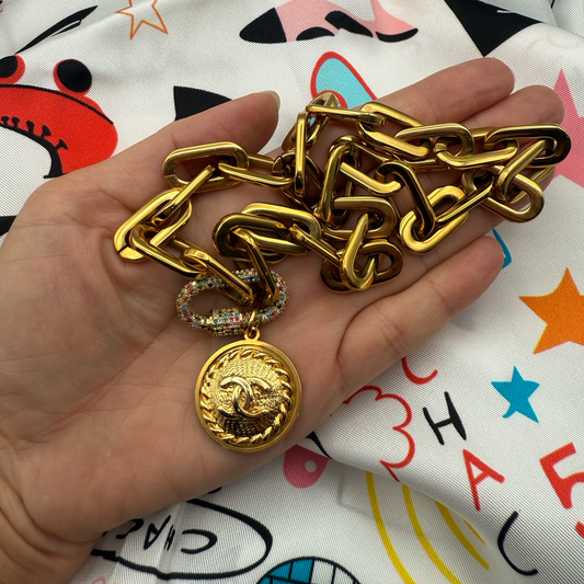 Repurposed Large CC Gold Charm Necklace