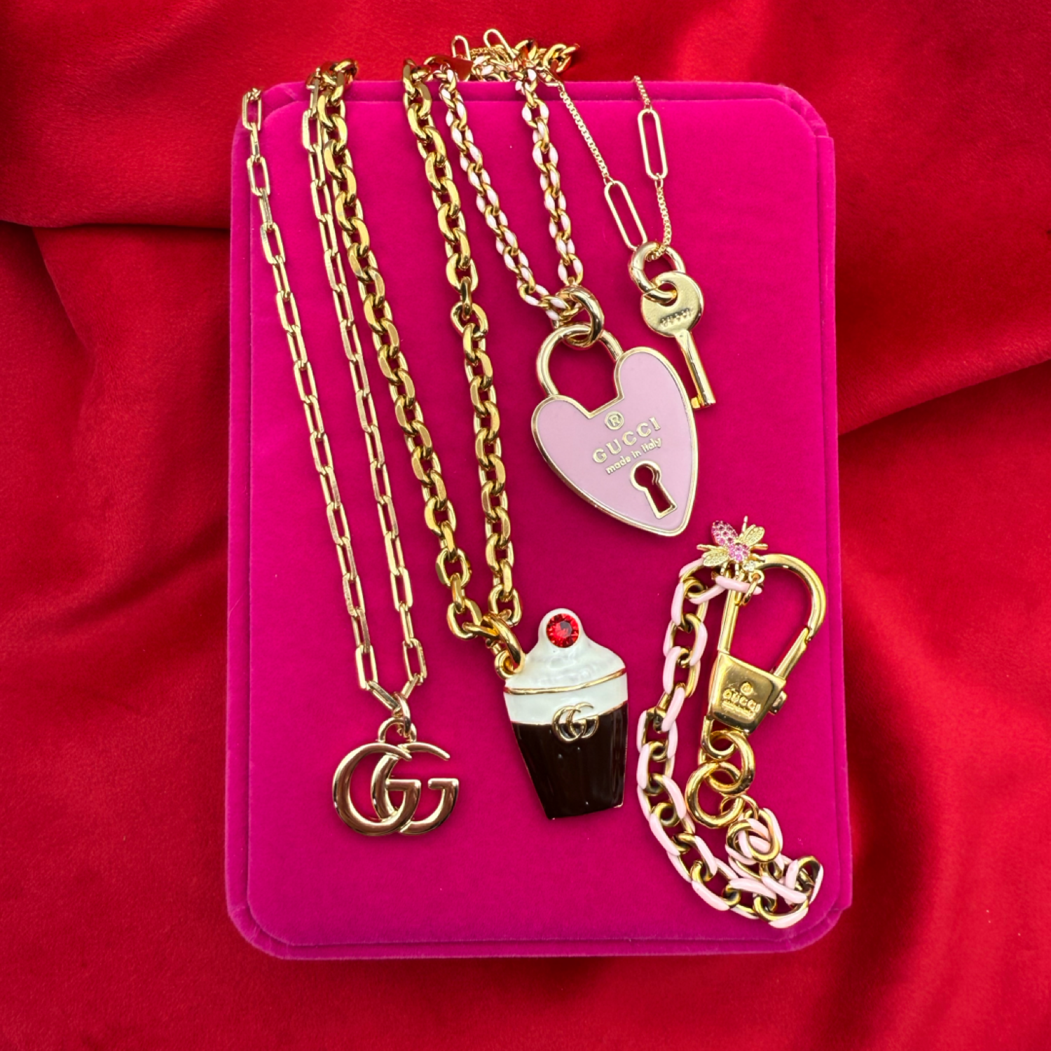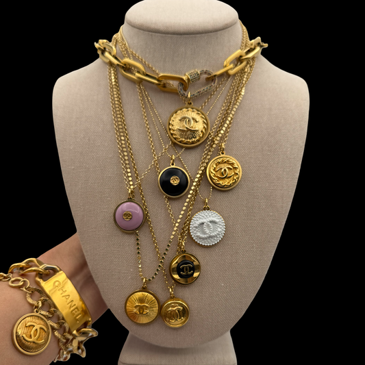 Luxury designer pieces reimagined as beautiful earrings, necklaces or bracelets to draw attention and stand out. Wear a stand alone piece or layer for more attention. Our pieces have the WOW factor and will add a bold statement to any outfit.