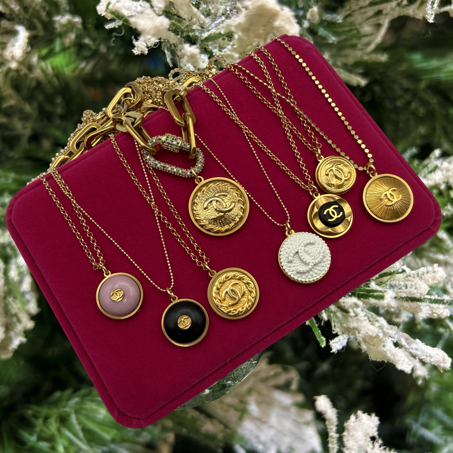 DISCLAIMER: All pieces are redesigned by Lina V Designs with repurposed designer and vintage pieces. Lina V Designs is NOT affiliated with any designers. Prices are solely determined by the chain, extra materials, time put into crafting and the rarity of the charm. Some pieces may have wear due to their authentic vintage condition