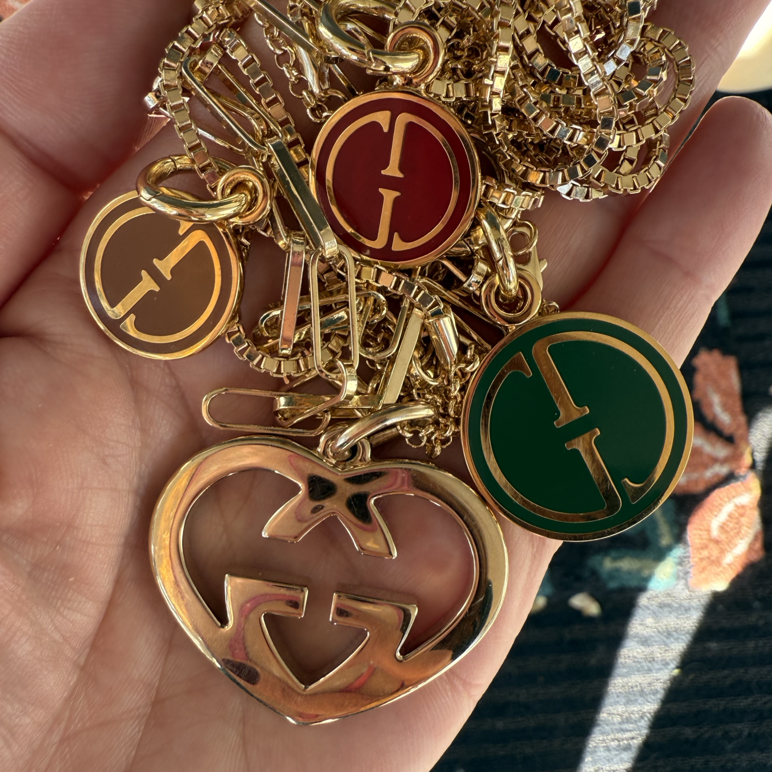 Repurposed and redesigned Gucci red charm necklace