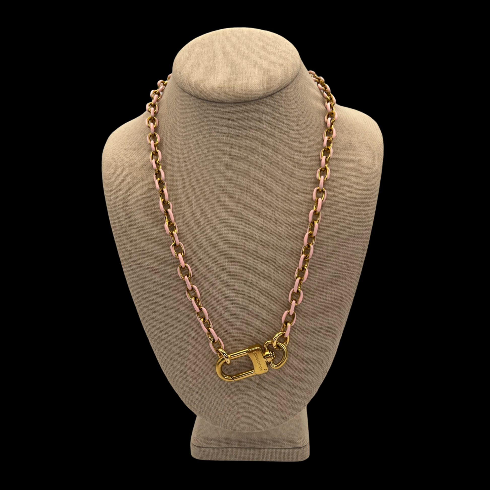 Repurposed and redesigned Louis Vuitton swivel clip clasp pink and gold necklace