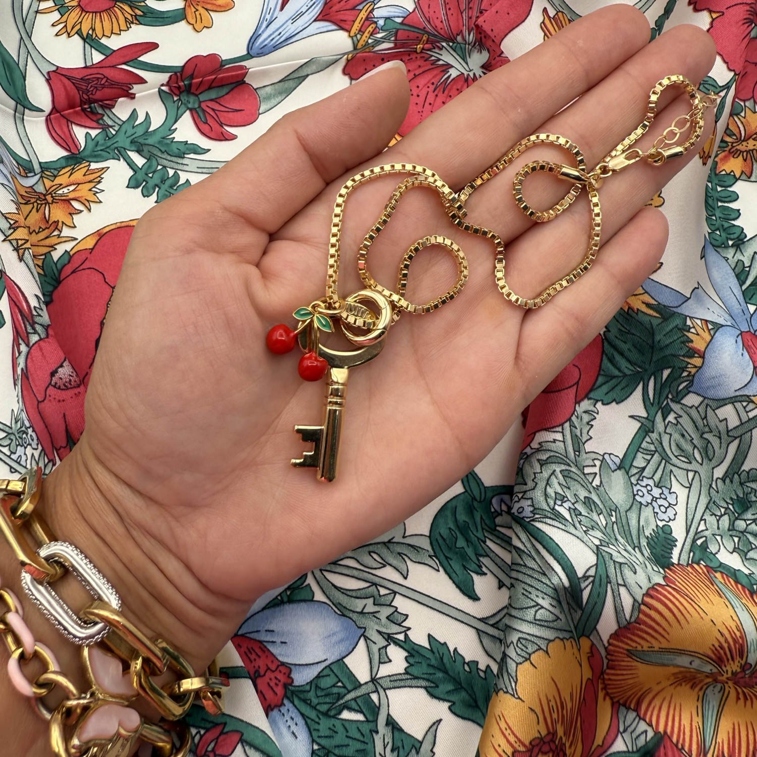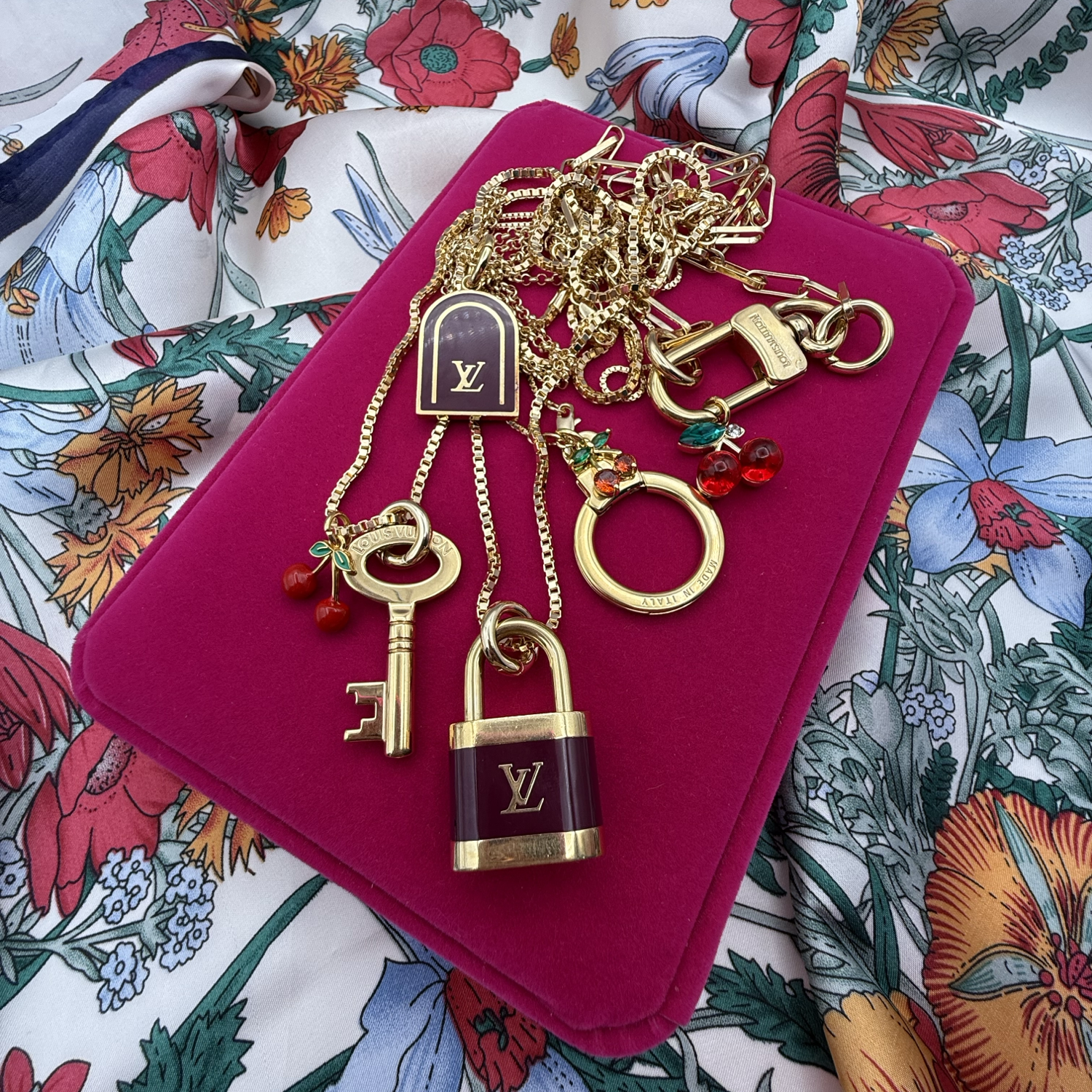 Repurposed LV Key & Cherry Gold Charm Necklace