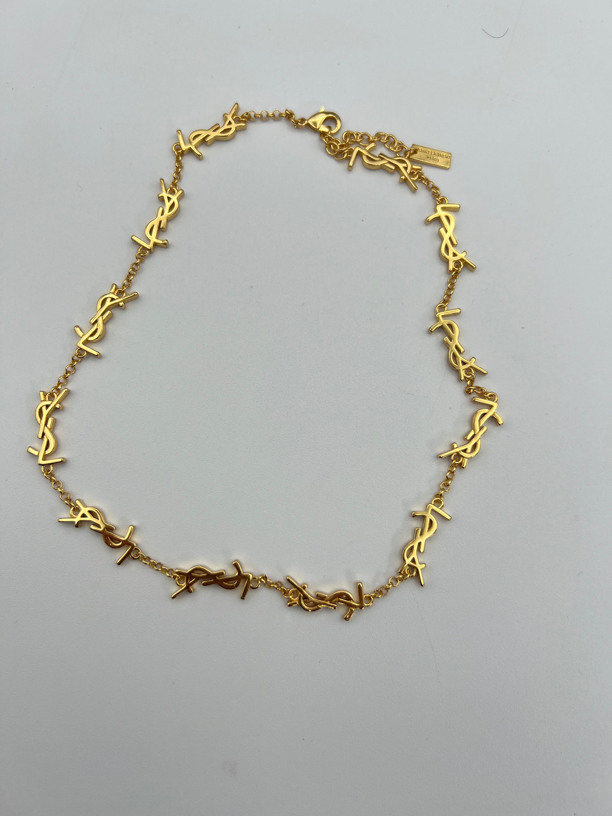 Repurposed and Redesigned YSL Gold Logo Mushroom Charm Necklace